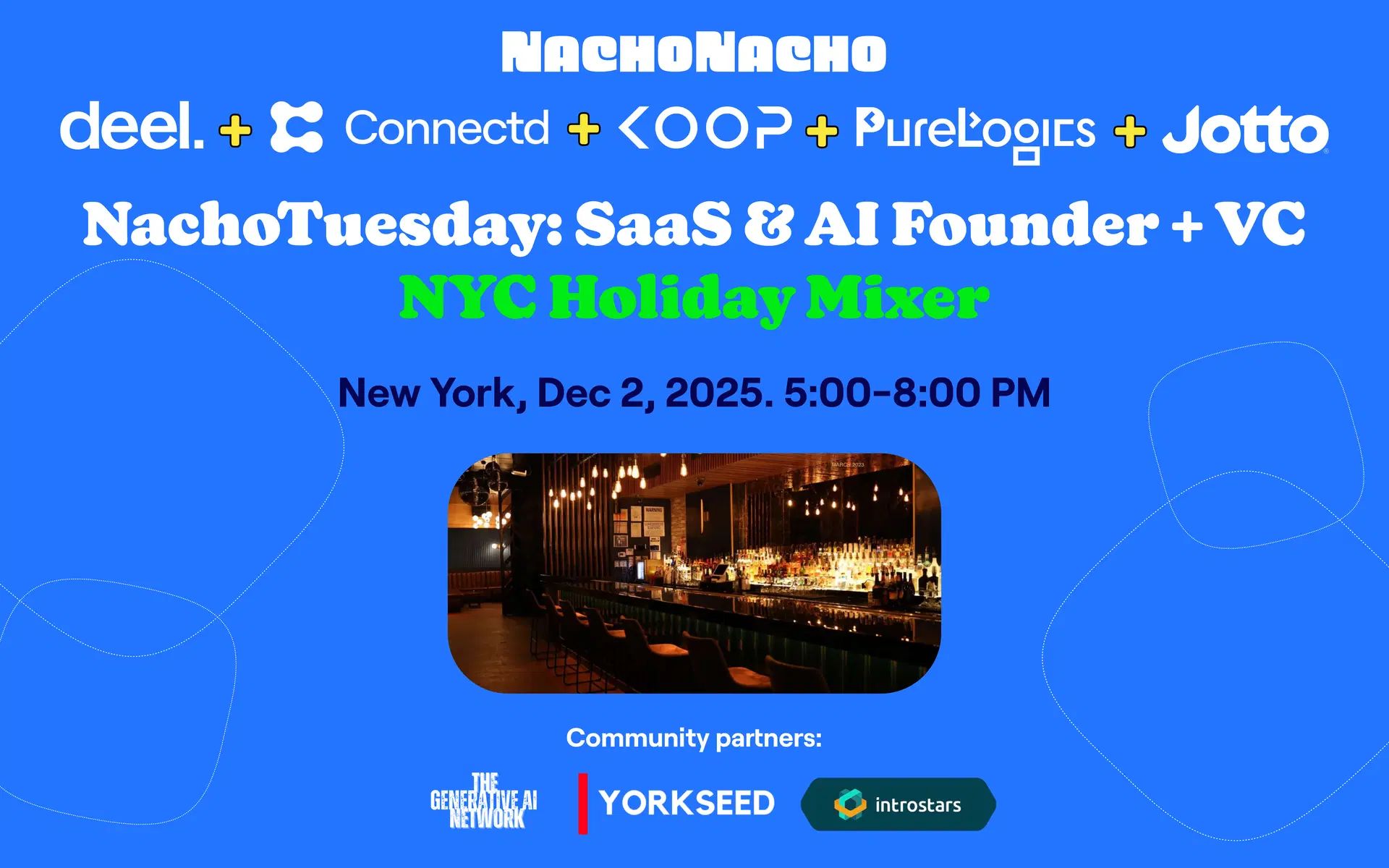 Tue, Dec 2, 05:00 PM NachoTuesday: SaaS & AI Founder + VC NYC Holiday Happy Hour